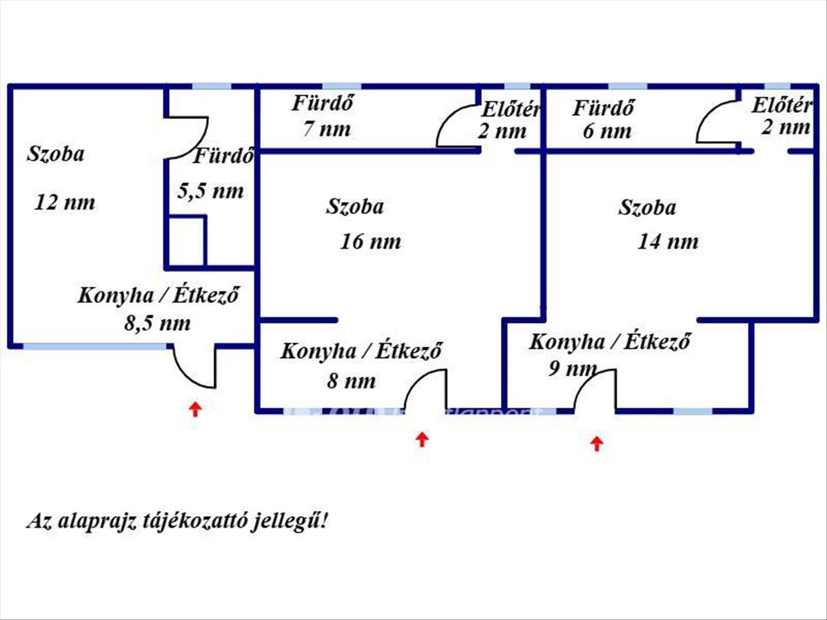 Jelenleg apartmanként funkcionál, így befektetésnek kiváló lehetőséget kínál és könnyedén családi házzá is alakítható.