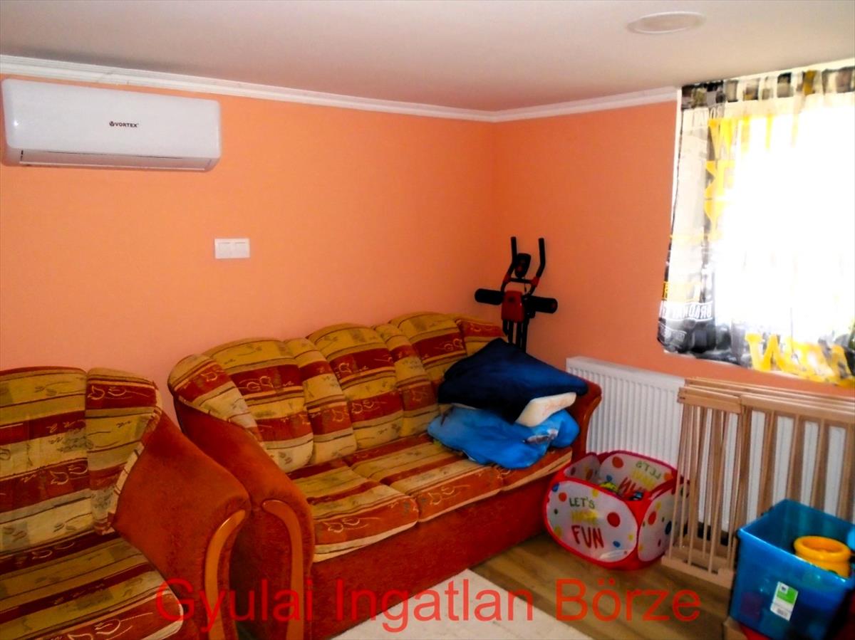 Gyula Újváriban, zöldövezetben, jó állapotú nappali + 2 szobás vegyes falazatú, 65 m2 alapterületű családi házat kínálok eladásra, telek mérete: 1090 m2.1 Szoba és a nappali laminált parkettás, a másik szoba padlószőnyeges, a közlekedő, a konyha, a fürdő és a különálló wc, mely hidegburkolattal ellátott, és a kamra pvc borítású. a családi ház nyílászárói 2 rétegű új hőszigetelt ablakokat kapott, melyek redőnnyel vannak ellátva, a műanyag bejárati ajtó több ponton záródó biztonsági zárral ellátott. a nyári meleg hónapokban 2 db. Klíma nyújt kellemes hőmérsékletet, mely (hűt – fűt). a ház fűtéséről és a meleg vízről gáz kazán gondoskodik. a fürdő és a wc szellőztető rendszerrel ellátott.