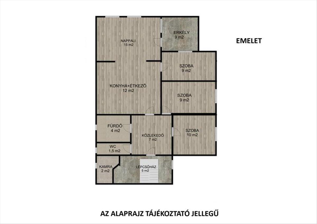 - Tágas, világos helyiségek, alkalmas két generáció együttélésére vagy apartman kialakítására
