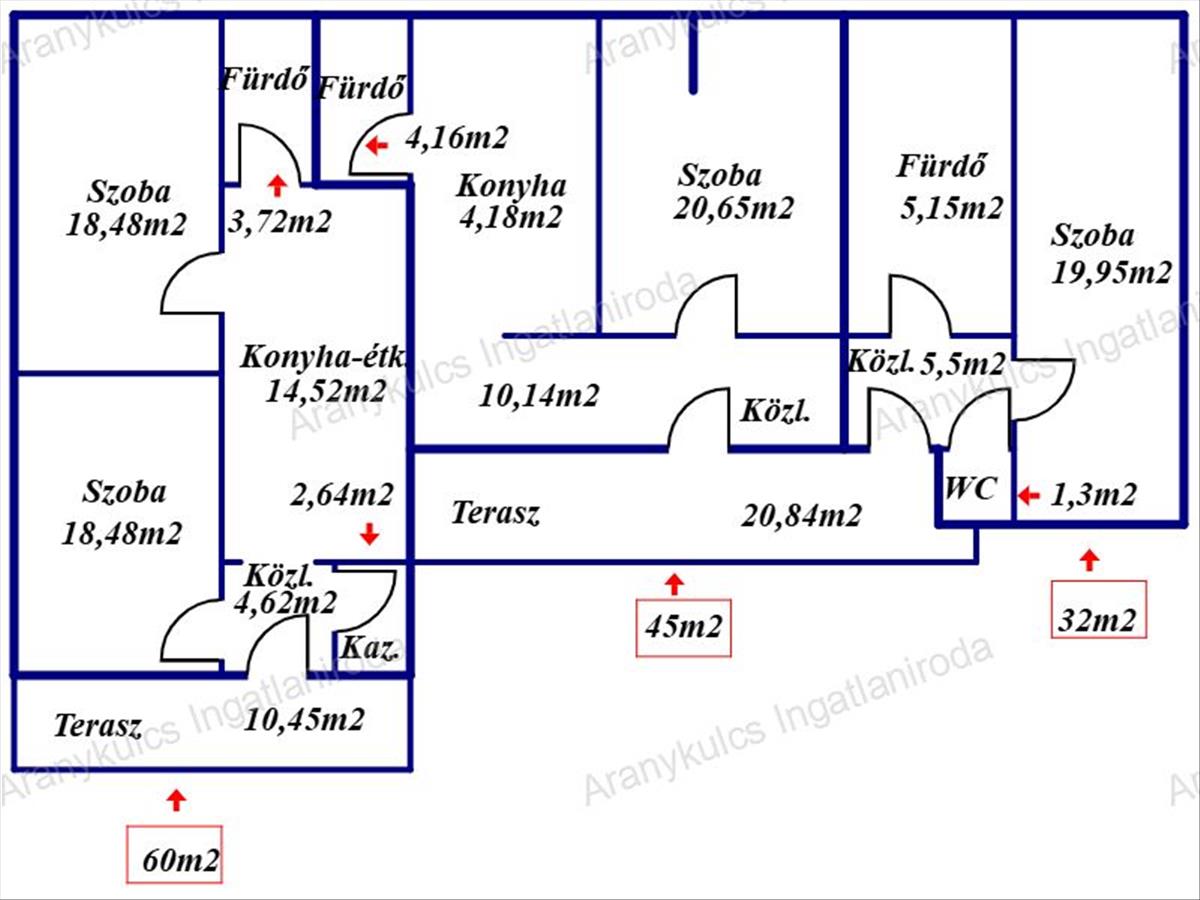 Az ingatlan területén három külön bejáratú, összesen 163 m2-es apartman kapott helyet. Az apartmanok mindegyike összkomfortos, teljesen felújított és teljes berendezéssel kerül átadásra. a modern igényeknek megfelelően kialakított, esztétikus terasz és filagória, valamint a finn szauna teszik még vonzóbbá ezt a rendkívüli ajánlatot. a kertben kerti grill és gyermek játszó is található, míg a 8 férőhelyes kocsibeálló biztosítja a kényelmes parkolást.