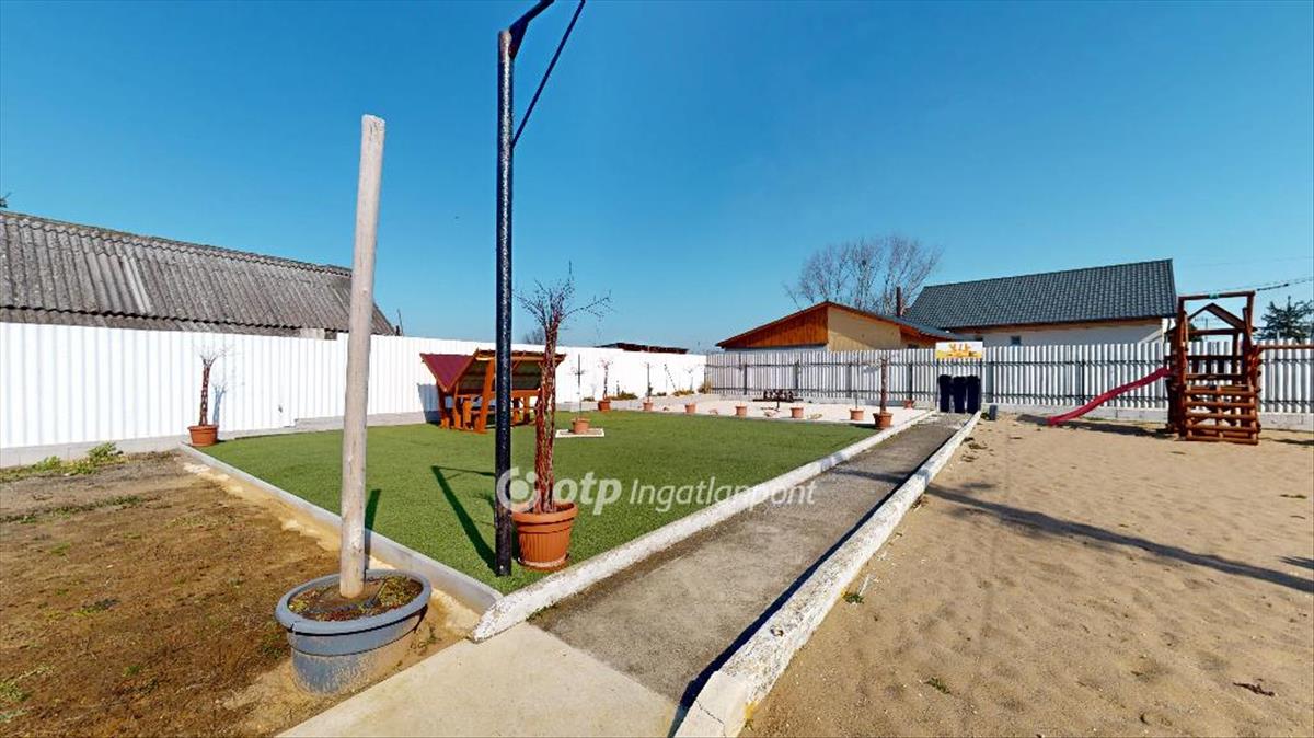 A 874 m2-es telken műfüves terület, filagória, homok alapos játszótér is helyet kapott, valamint egy tekepálya.