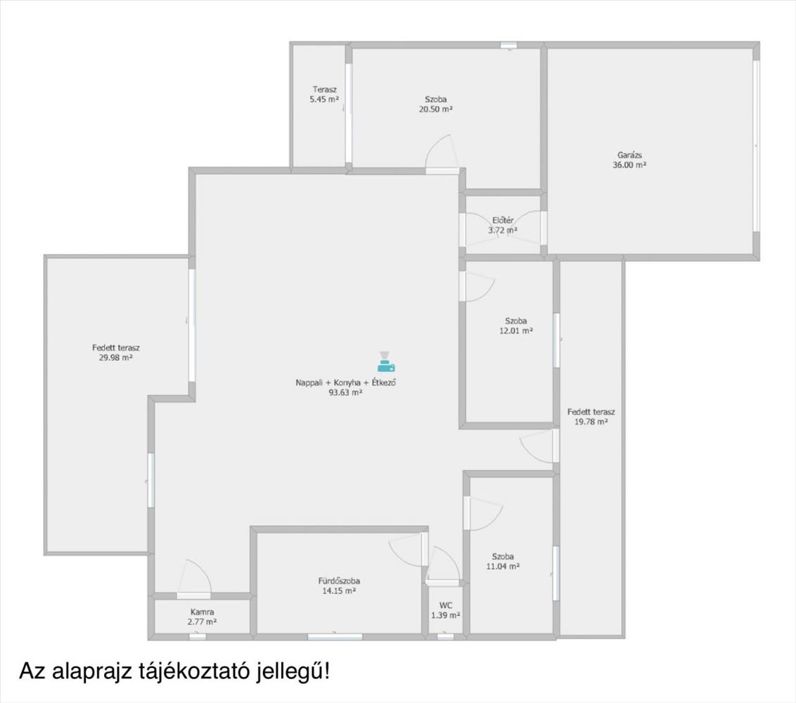 - Nappali + konyha + étkező, 3 hálószoba, dupla garázs, fürdőszoba, külön wc, kamra.