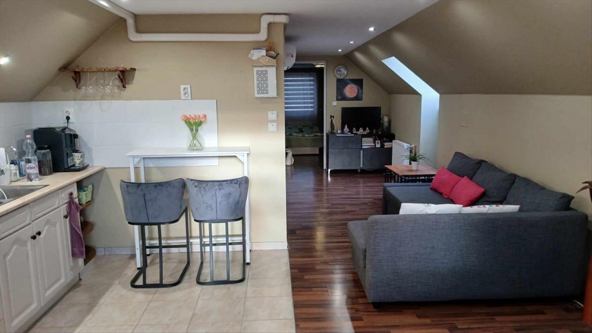 Külső feljárón tágas, 60 nm -es, amerikai konyhás nappali+2 szobás, fürdőszoba-wc-s lakásba érkezünk. Az egyik szobában nagyméretű gardróbszekrény könnyíti a holmik tárolását. Klíma felszerelve. Vízfogyasztás külön almérőről működik.