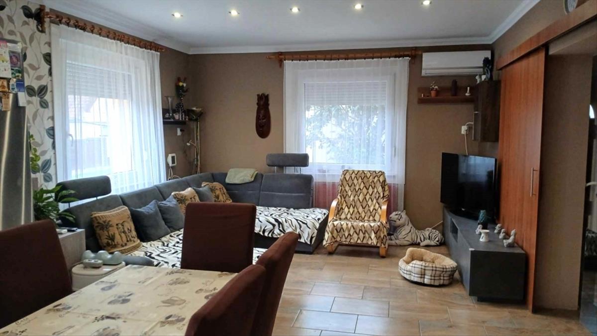 Az egész ház gázcirkó fűtésű. Műanyag nyílászárók redőnnyel, szúnyoghálóval felszereltek. Mindhárom lakrésznek külön villanyórája van és klímával is lehet télen fűteni, nyáron hűteni a helyiségeket. Nappalik járólaposak, szobák laminált parkettásak, festett és tapétázott falakkal. Vizes helyiségekben járólap és csempe van.