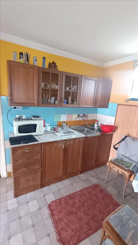 A kétszobás, felújítást igénylő családi ház 68 m2, amelyben konyha, étkező, kamra, fürdőszoba +wc található.