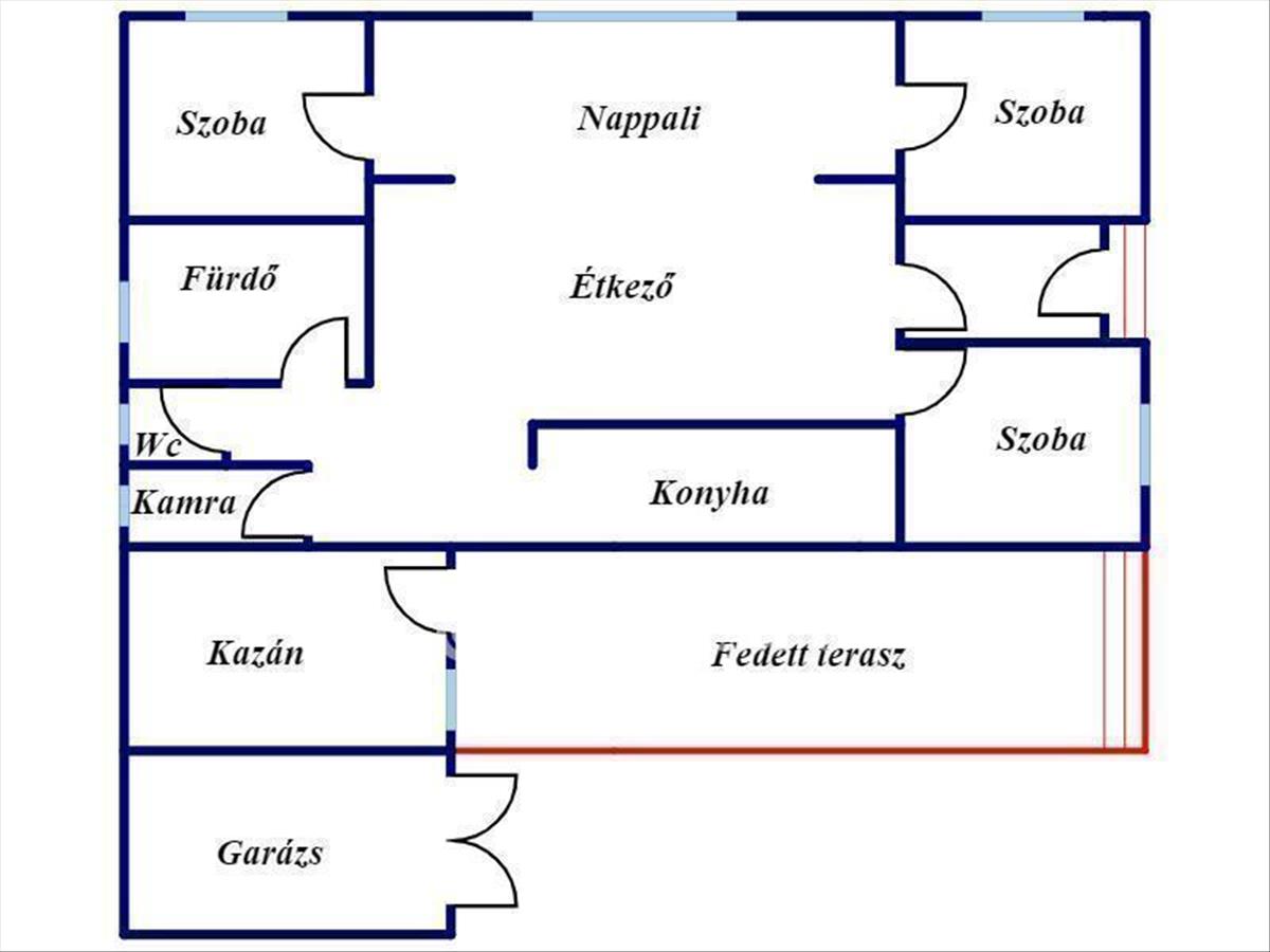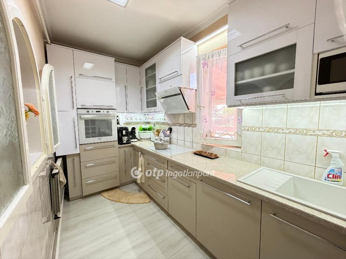 3 Nagyméretű hálószoba, továbbá egy új gépesített konyha, fürdő, wc, kamra, kazánház-mosókonyha helyiségek találhatóak. a fűtés radiátoros, gáz cirkó kazán szolgálja. a nagyobb térben hűtő fűtő klíma van. a tágas dupla mosdókagylós fürdőszobában többfunkciós zuhanykabin, és hidromasszázs kád található