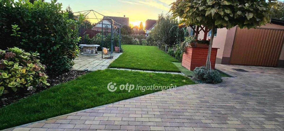 A ház nagyméretű telekkel rendelkezik. a gépkocsi beálló teljes egészében térkövezett. a kertet gyepszőnyeg, díszkút, örökzöldek, rózsafák, gyönyörű hortenziák díszítik. a vízellátásról fúrt kút és automataöntöző rendszer gondoskodik.