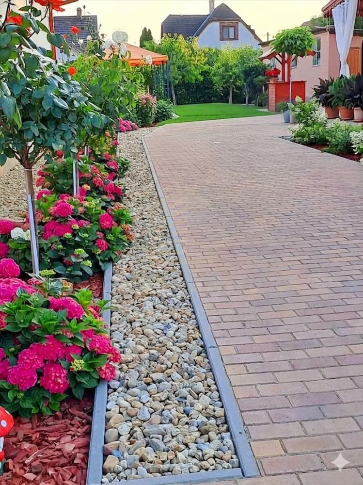 - gyönyörű virágokkal parkosított kert hangulatos, fedett terasszal