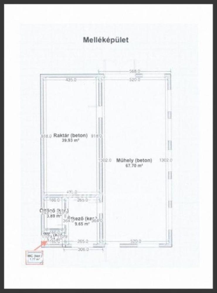 Az utcai bejáratú üzlethelység nyílászárói műanyag, hőszigetelt üvegezésű, 24 m2 +terasszal 3, 5 m2, mely jelenleg is, működő bérbe adott átlagos állapotú. a nagy méretű melléképület bérbe van adva kereskedelmi ipari tevékenységet folytatnak 71 m2 helységei: műhely-raktár -étkező öltöző, zuhanyzó - wc.