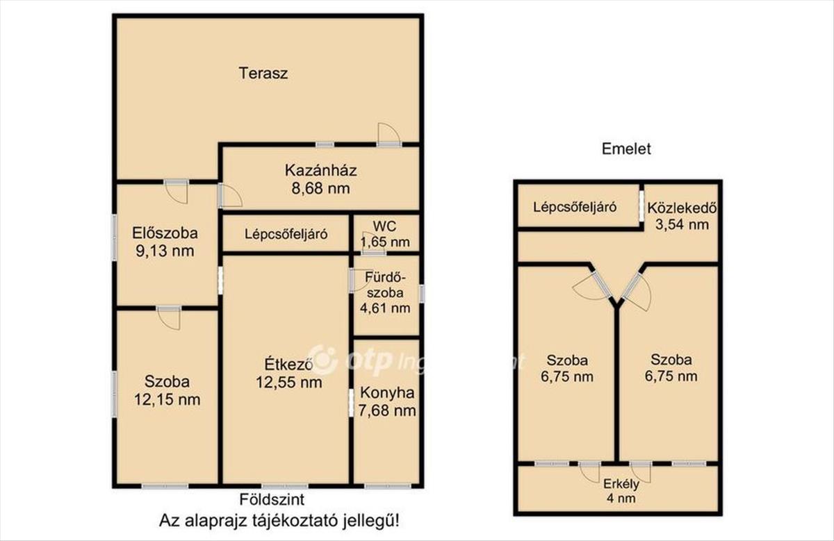 - Alapterület 2 szint: nettó 80 nm + terasz