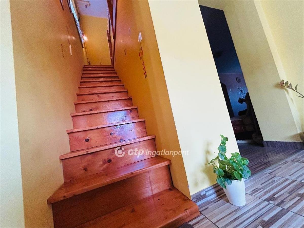Földszint: nappali- étkező- konyha, 1 szoba, előszoba, fürdőszoba, külön WC-vel, fedett terasz, lépcsőfeljáró
