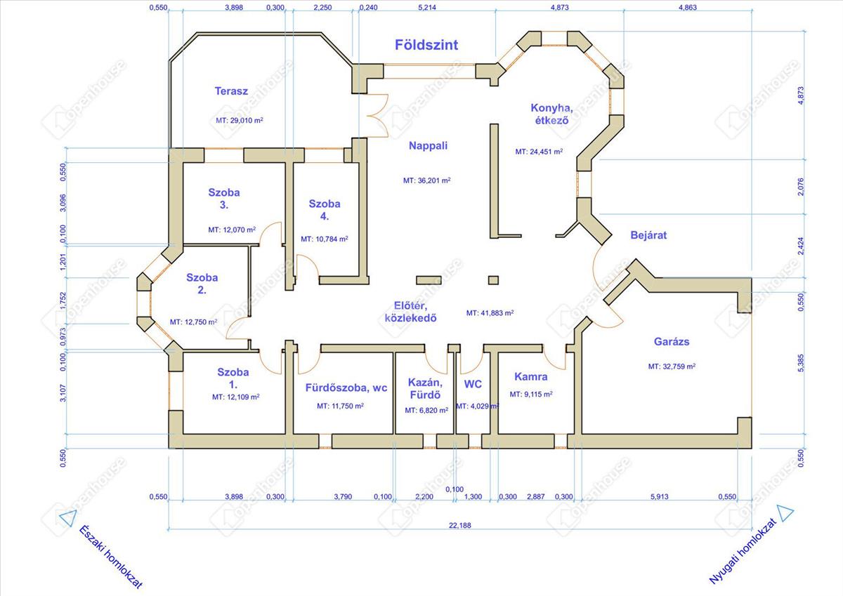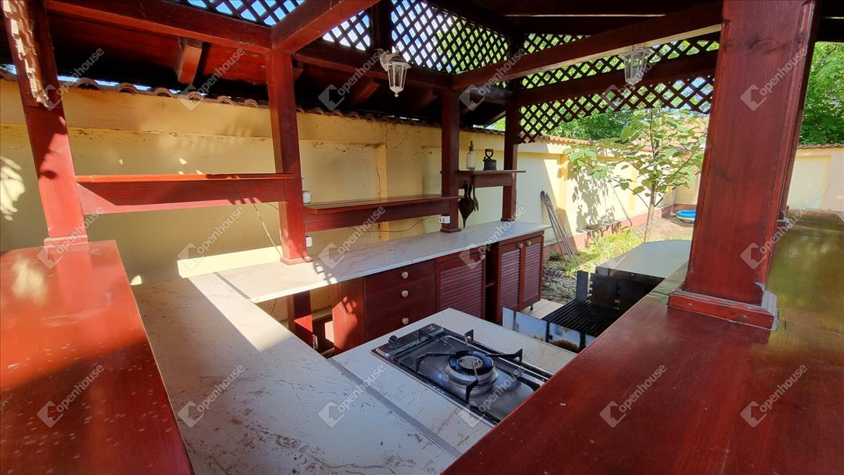 Kert: 26 m²-es terasz, steakház, bográcsozó, gyermekjátszótér, hinták, 4 gépkocsi részére parkolási lehetőség