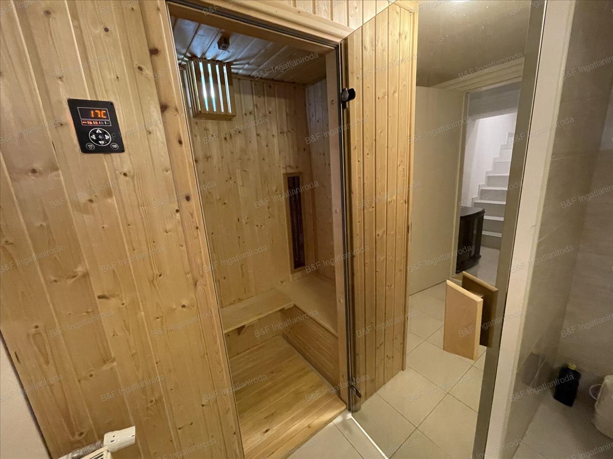 A lakás alatt egy 40 nm-es szuterén került kialakításra, melyben egy szoba, konyha, fürdőszoba, folyosó, valamint egy szauna is található. Ez az épületrész a lakásból és közvetlenül az udvarról is megközelíthető.