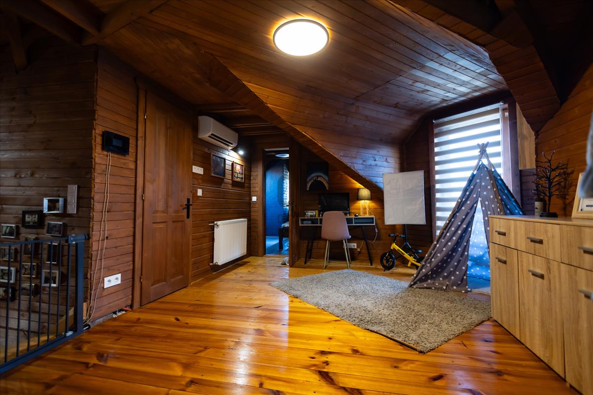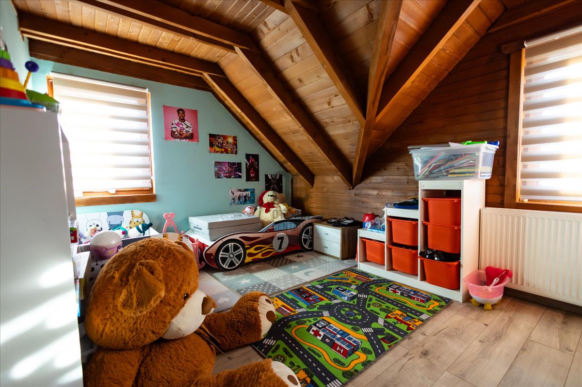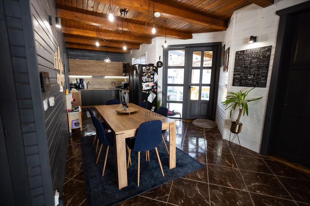 Közkedvelt üdülőváros csendes, biztonságos, családias utcájában eladó, 139 nm -es, 2008-ban épült, amerikai konyhás nappali + 4 szobás, kétszintes gerendaház, amely ideális választás kisgyermekes családok számára.