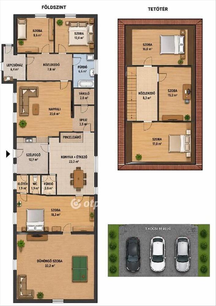 - Beépített tetőtér – ideális külön élettérnek