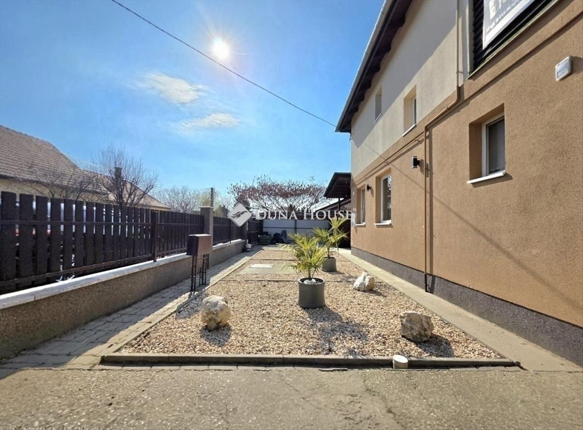 Megvételre kínálunk egy 2010-ben épült, igényes kivitelezésű, önálló családi házat Halásztelek csendes utcájában, mindössze 15 perc autóútra Budapest városától. Az ingatlan bruttó 181 nm , nettó 106 nm lakótérrel, valamint 33 nm -es kétállásos garázzsal rendelkezik. Elrendezése ideális családok számára. Főbb helyiségek:amerikai konyhás nappali étkezővel4 hálószoba2 fürdőszoba WC-velmosókonyhaduplagarázsrendezett kert, fedett terasz, kerti tó2 kerti tárolóAz emeleten 3 hálószoba és egy tágas fürdőszoba található, innen érhető el a műfűvel borított tetőterasz, amely igény esetén akár +30 nm lakótérré is beépíthető. Műszaki tartalom:napelemes rendszergáz kombi cirkópadlófűtés és radiátorokGree a++ klímákkandallóelektromos kapuk és kamerarendszerfúrt kút locsoláshozCsendes, családbarát környezet, gyors elérhetőség Budapest felé. Ideális választás azoknak, akik nyugodt környezetben, mégis a főváros közelében szeretnének élni. FIX 3% lakáshitelre megvehető