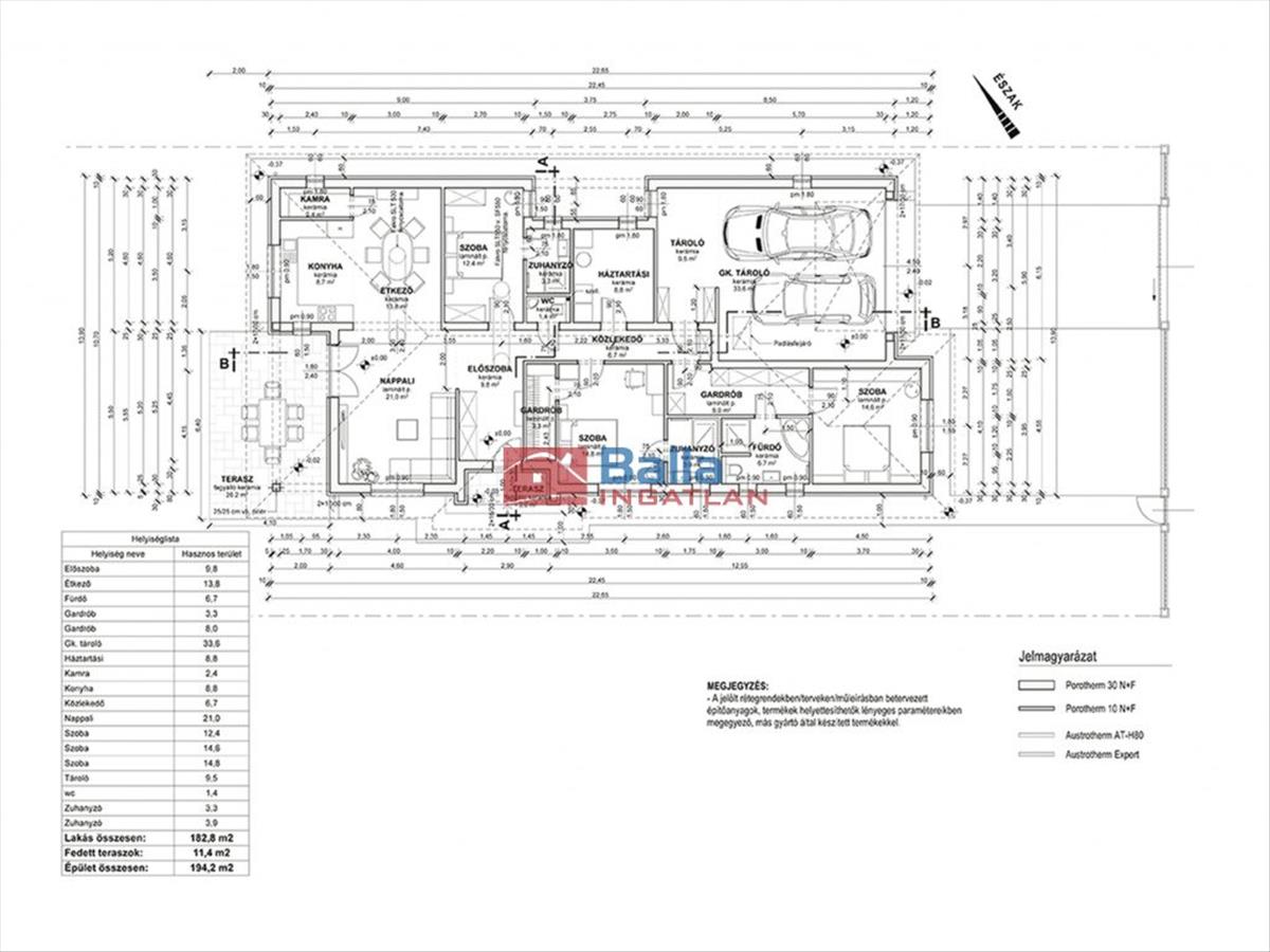 Nettó lakótér: 183 nm Terasz: 15 nm Nyárikonyha: 50 nm