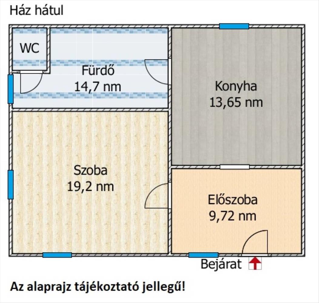 Ablakok: műanyag, redőnnyel, szúnyoghálóval ellátva.