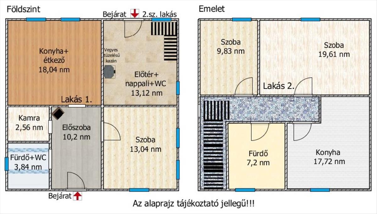 -cirkó fűtés a fenti lakrészben (de vegyes tüzelésű kazán is van)