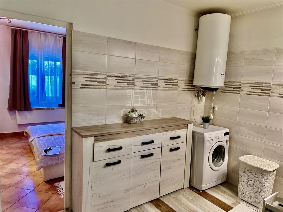 Az első lakrészbe belépve egy tágas, beépített konyhabútoros konyha étkezővel fogad minket! Innen nyílik egy wc ami háztartási helyiségként is funkciónál, itt található a mosógép, valamint egy korszerű bojler is. Ebből a helyiségből tudunk felmenni a felső szintre. Az emeletre felérve, egy kis nappaliba érkezünk, ahonnan nyílik egy tágas, káddal ellátott fürdőszoba, valamint 2 szoba és egy kis közlekedő. a kisebb szobából egy erkélyre is kiléphetünk.
