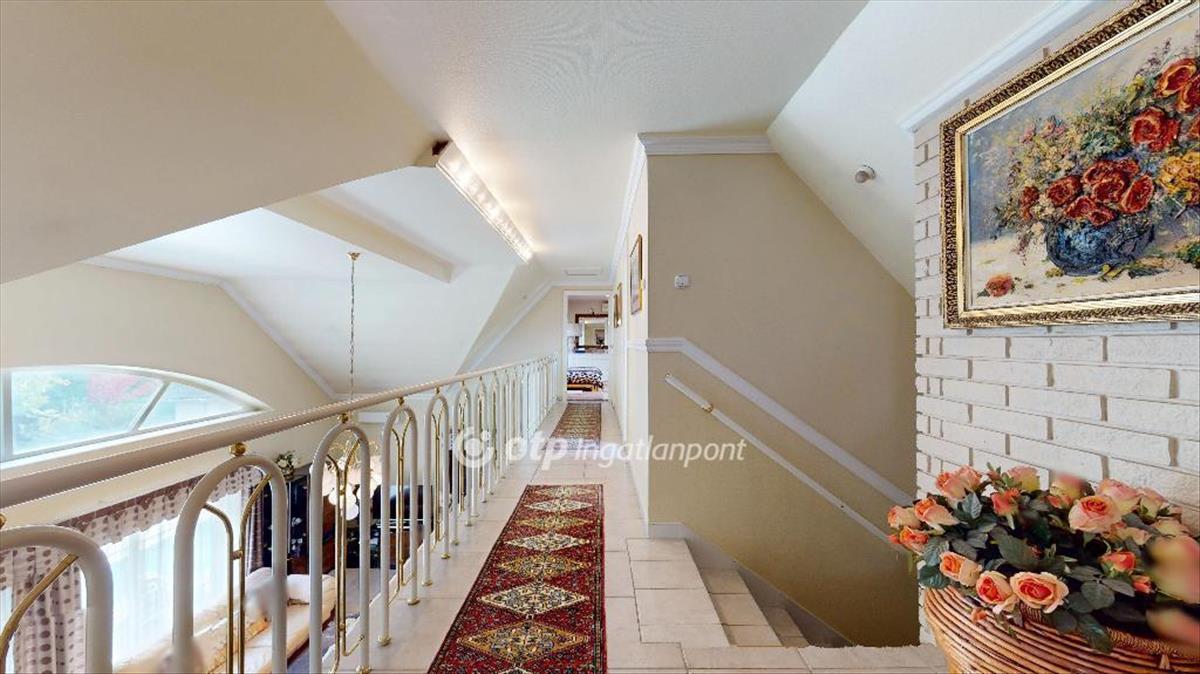 - teljes üvegfelületű méretes (55 nm) napfényes galériás nappali kandallóval, klímával, medencére nyitható kertkapcsolattal, mely különleges térérzetet és eleganciát biztosít