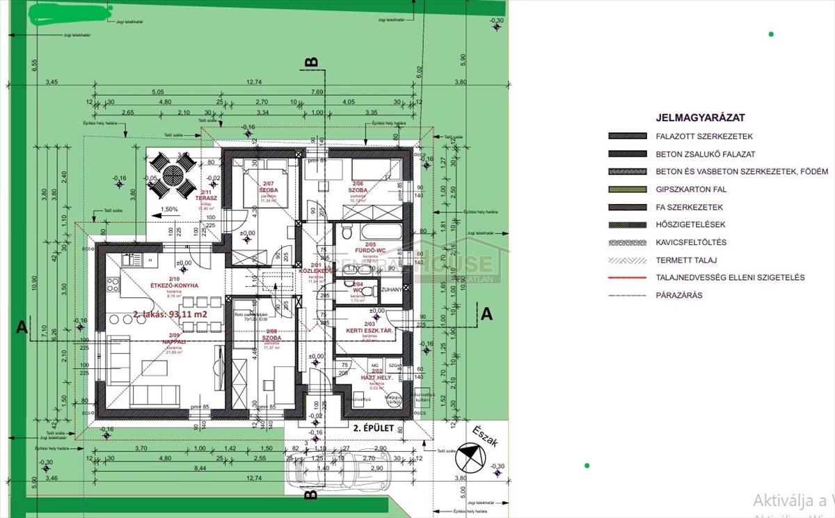 Ház nettó alapterülete: 93, 11 m2 + 11, 4 m2 terasz