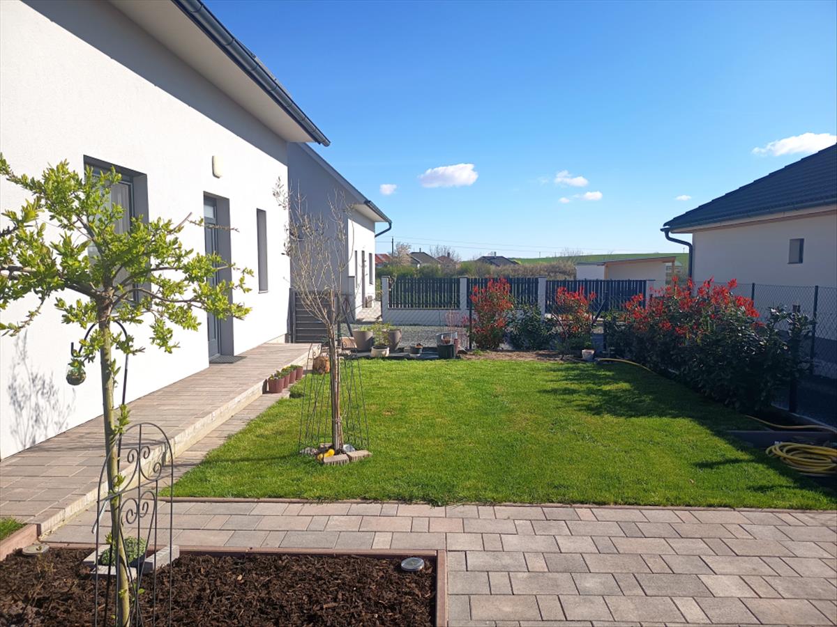 A telek mérete ideális: könnyen fenntartható, mégis biztosítja a kikapcsolódás lehetőségét. Rendezett, térkövezett és füvesített udvar, amelynek gondozását automata öntözőrendszer segíti, fúrt kútról biztosított vízellátással. 12 M²-es, pergolával fedett terasz