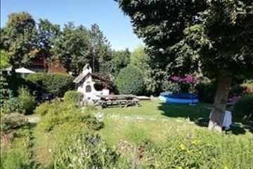 A kertben hangulatos kemence található, tömörfa asztallal és padokkal; s a termények tárolására boltozatos pince épült.