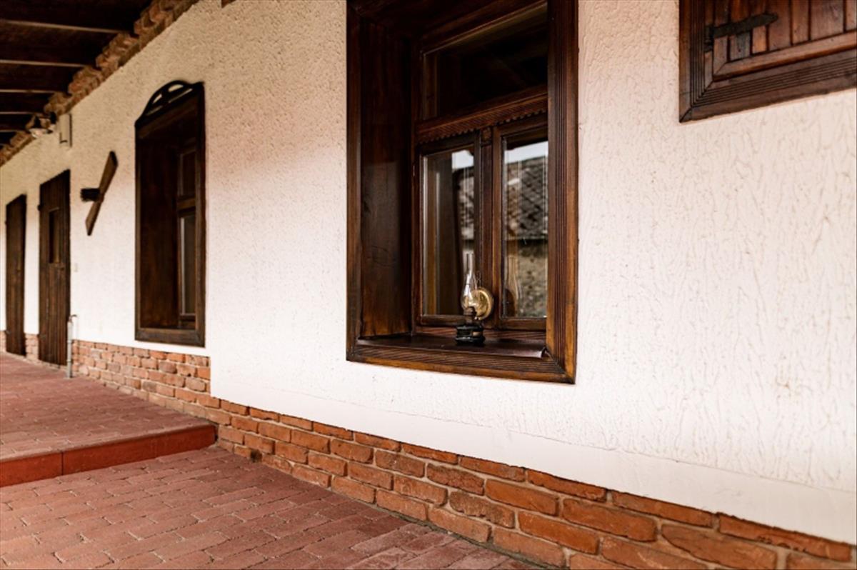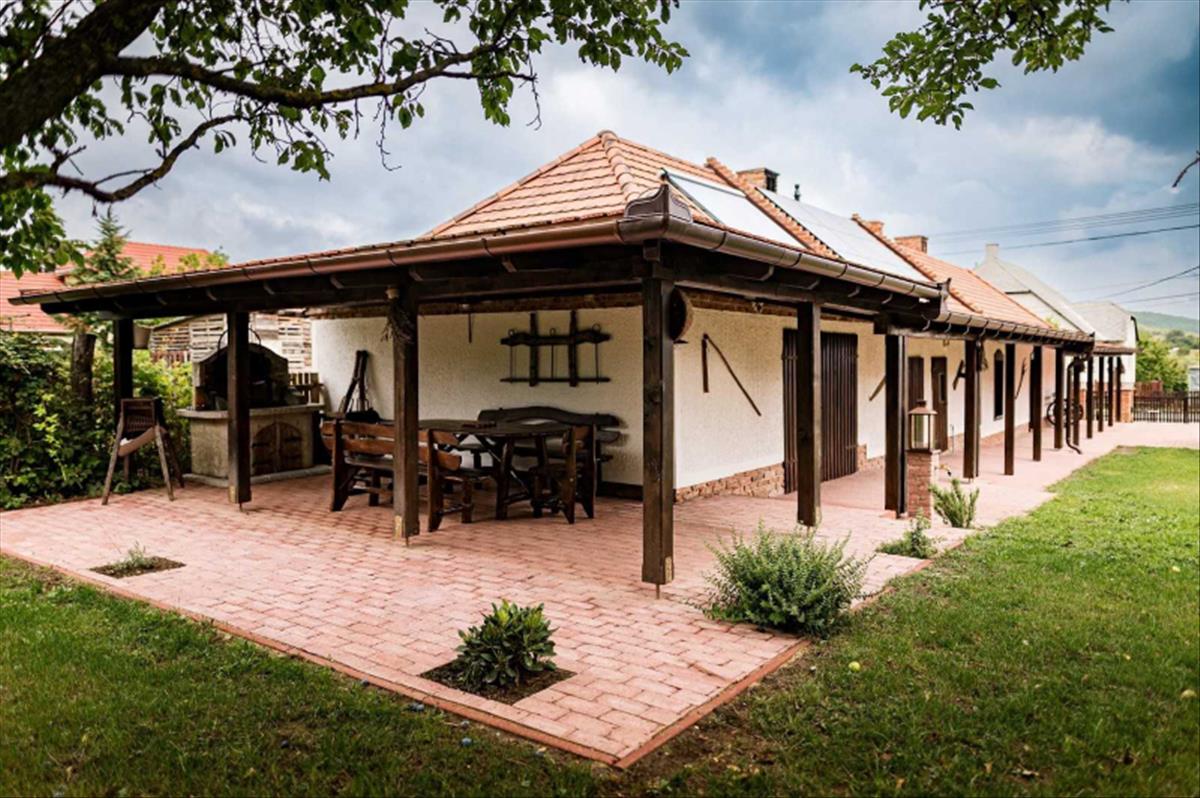 A Dunántúl legmagasabban fekvő településén, a Bakony szívében luxus szinten felújított, 114 m2-es, tornácos parasztház 768 m2-es, rendezett, szép telken keresi új, szerető gazdáját. Kiváló levegő, csend, nyugalom, harmónia.A kő falak kivétel, teljes felújításon esett át az ingatlan. 10 Cm kőzetgyapot hőszigetelés a homlokzati falakon, 15 cm fújt hőszigetelés a födémen, egy része osb borítást is kapott. 10 Cm. Lépésálló polisztirol alapú hőszigetelés az aljzatban. Új tetőszerkezet cseréphéjalással. Radiátoros fűtés, a visszamenő fűtéscsövek a padlóban kerültek elvezetésre, ezáltal a kerámia padlóburkolat hőérzete is kellemes a fűtési szezonban. Egyedi kőrisfa ablakok 4 rétegű hő- és hangszigetelt üvegezéssel. Antikolt fa gerendák és födém. Egyedi, kőrisfa bútorok, belső ajtók, ajtó tokok. Egymással harmonizáló bútorok, nyílászárók. Új víz, csatorna, villany és gáz vezetékek, gépészet. Immergas 12 KW-os hőszivattyú + 300 literes meleg víz tartály. Kiegészítésként 24 KW-os Immergas gázkazán. 1-1 Db. Hűtő-fűtő klíma a wellness részen és a lakás közepén elhelyezkedő konyha-étkezőben. Agyagkandalló. Egyedileg színterezett ereszcsatorna rendszer. Napkollektor, napelem. Infra szauna, elektromos és fafűtésű akril dézsa, esőztető zuhany, külön wc a wellness részlegben. Fedett terasz épített grillel, egyedi tölgy étkezővel. Füstölő. Réz csapok, mosogató. Beépített, teljesen gépesített konyha. Kültéri, beltéri hangulatvilágítások, lámpák. Kültéri, beltéri dísztárgyak. Elektromos nagy kapu. 3 Gépkocsi részére térkövezett parkoló. Kerti csap. Száraz, hűvös pince. Rendezett kert dísznövényekkel, gyümölcsfákkal. Riasztó, kamerarendszer. 3X32 Amper áramerősség.