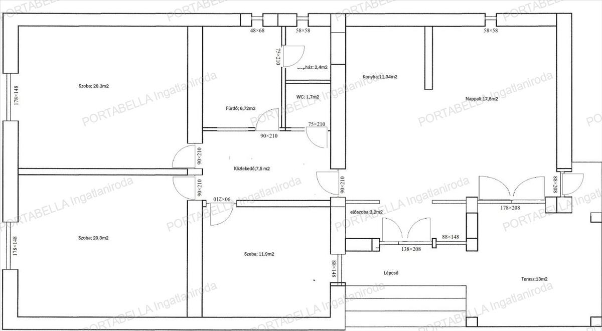 3 külön nyíló szoba (20nm , 20nm , 12nm )