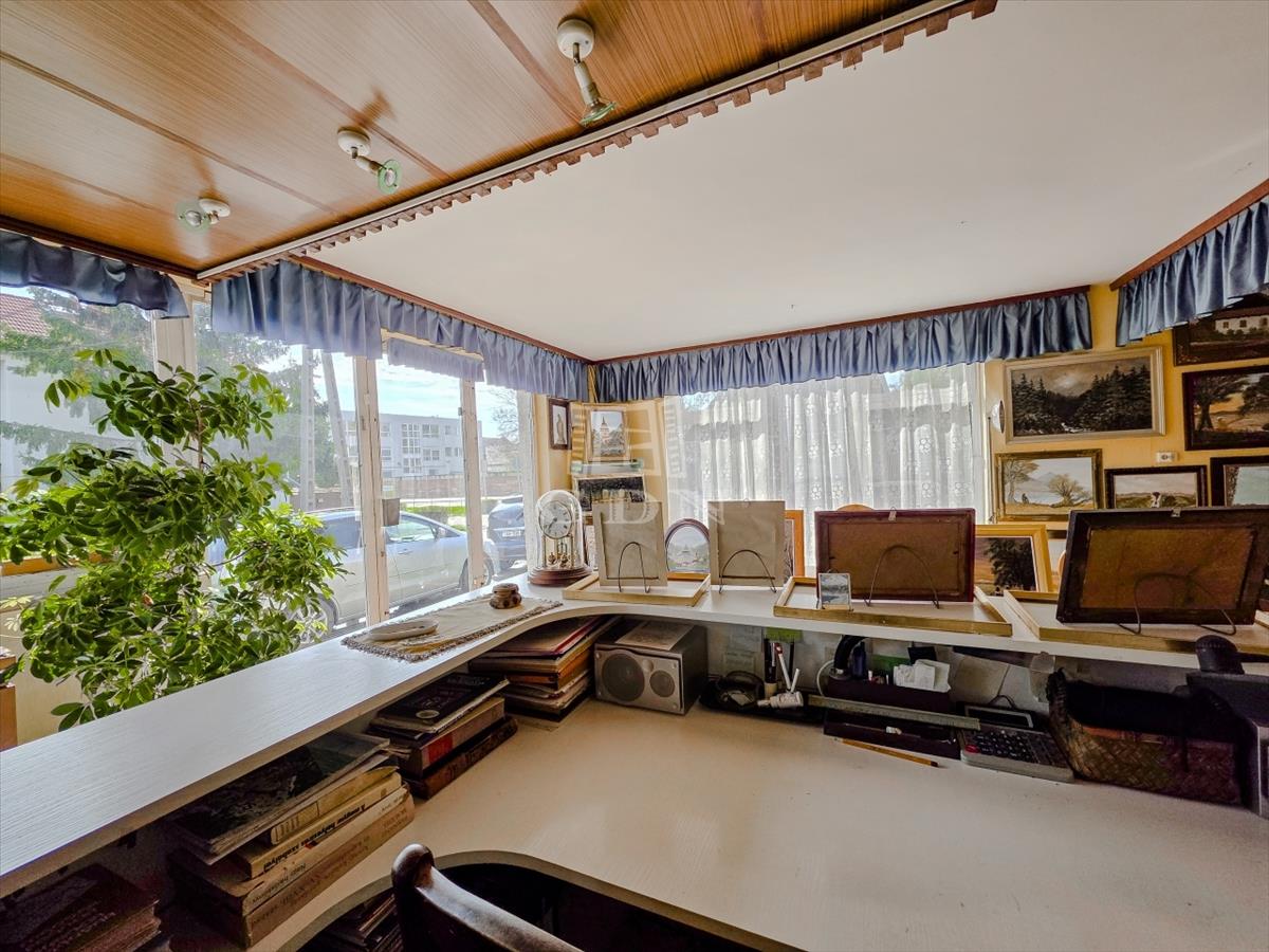 A felső szint jelenleg lakásként funkcionál, de kiválóan alkalmas irodának, rendelőnek vagy egyéb szolgáltató tevékenységre is.