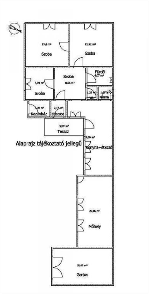 A házban 2 db nagyobb szoba, 2 db 1/2 szoba, konyha+étkező, fürdőszoba, külön wc, kamra és kazánház, előszoba, külön épületben műhely és garázs található.