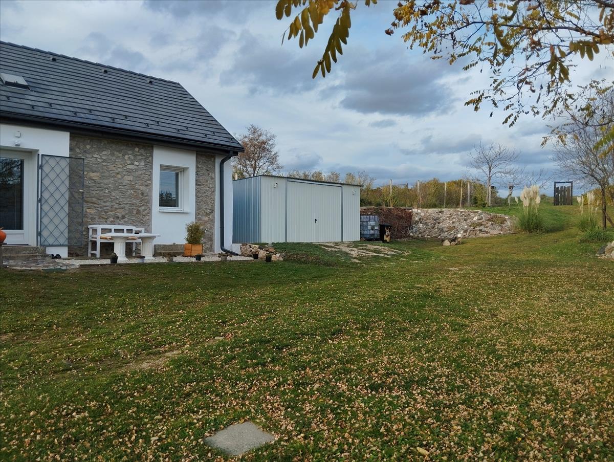 1242 m2-es, összközműves telken fekszik, gáz nem került bevezetésre az ingatlanba. További melléképületek a kertben: bazalt kőből épült 25 m2-es pince, 2 m2-es kerti tároló, valamint egy 25 m2-es lemezgarázs.