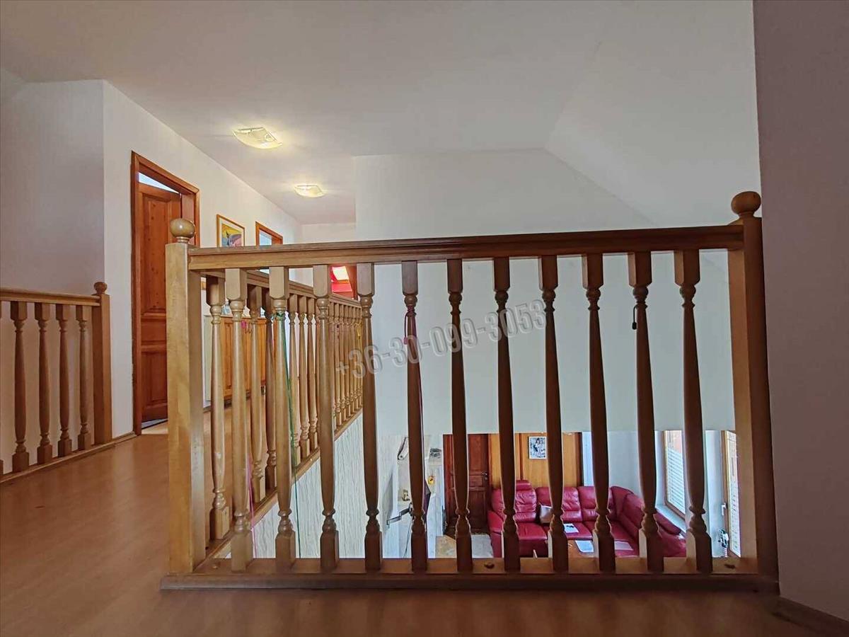 A tágas nappalihoz egy galéria kapcsolódik, ahonnan látványos kilátás nyílik a nappali térre – impozáns belmagasság és kellemes, világos térérzet jellemzi ezt a részt.