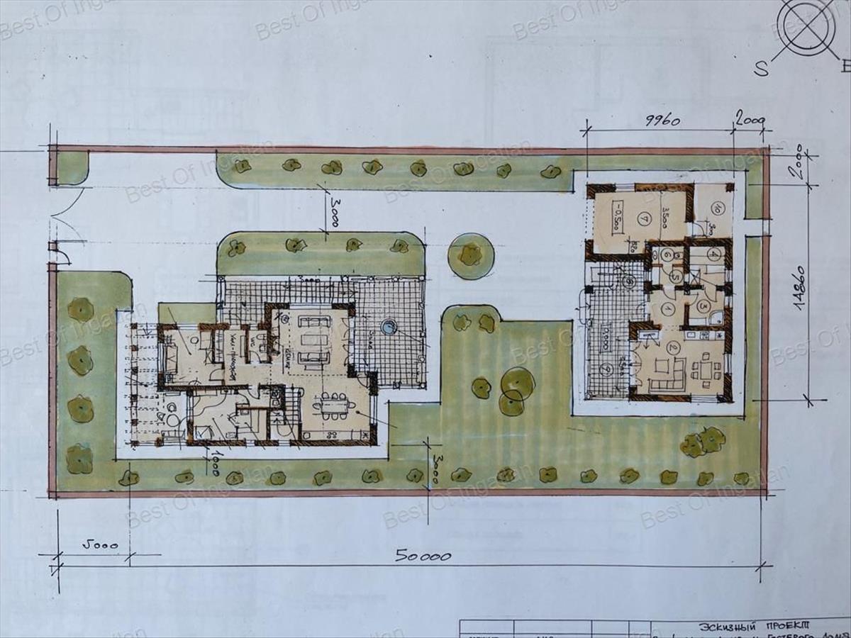 - lakótér: 184 m2 és egy 92 m2-es vendégház