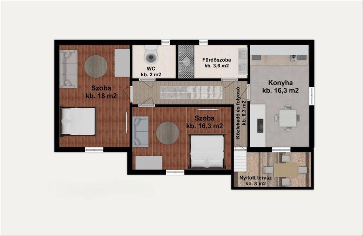 -nyitott terasz(kb. 8 m2)