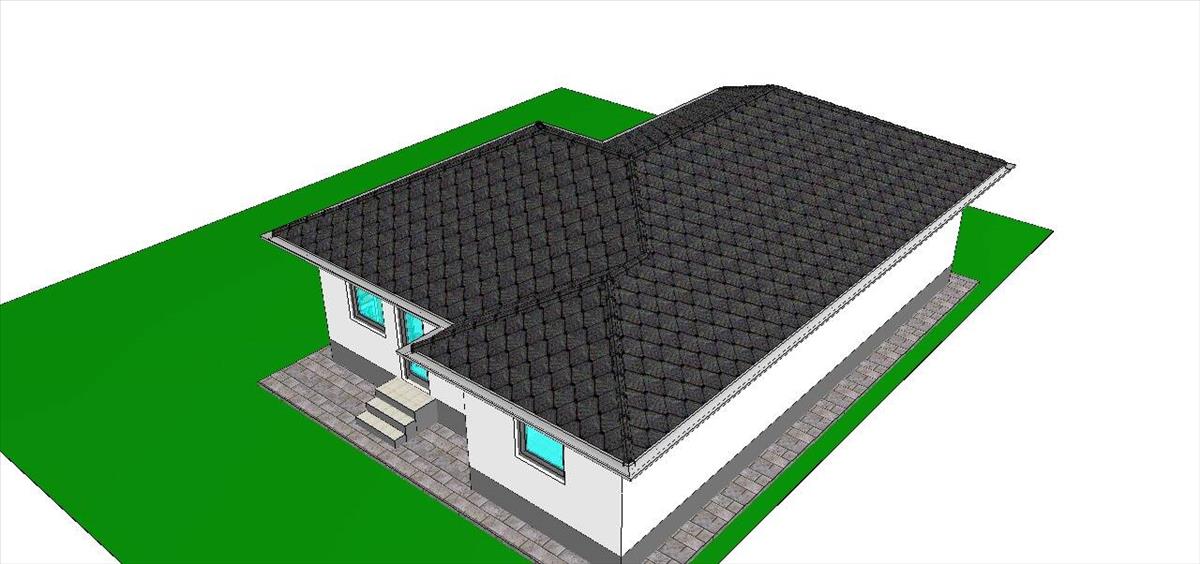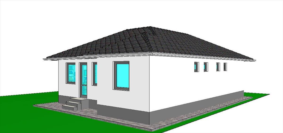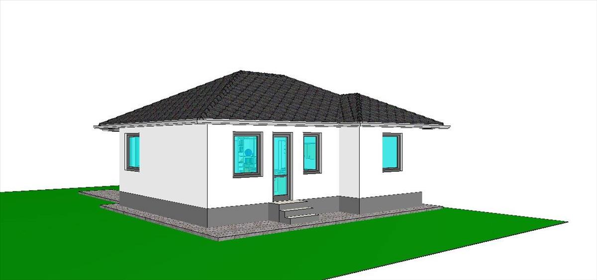 Stílusos megjelenés: a látványterv szerinti L-alakú épület nemcsak esztétikus, de rendkívül praktikus is: védett teraszt és jól elkülönített lakótereket tesz lehetővé.