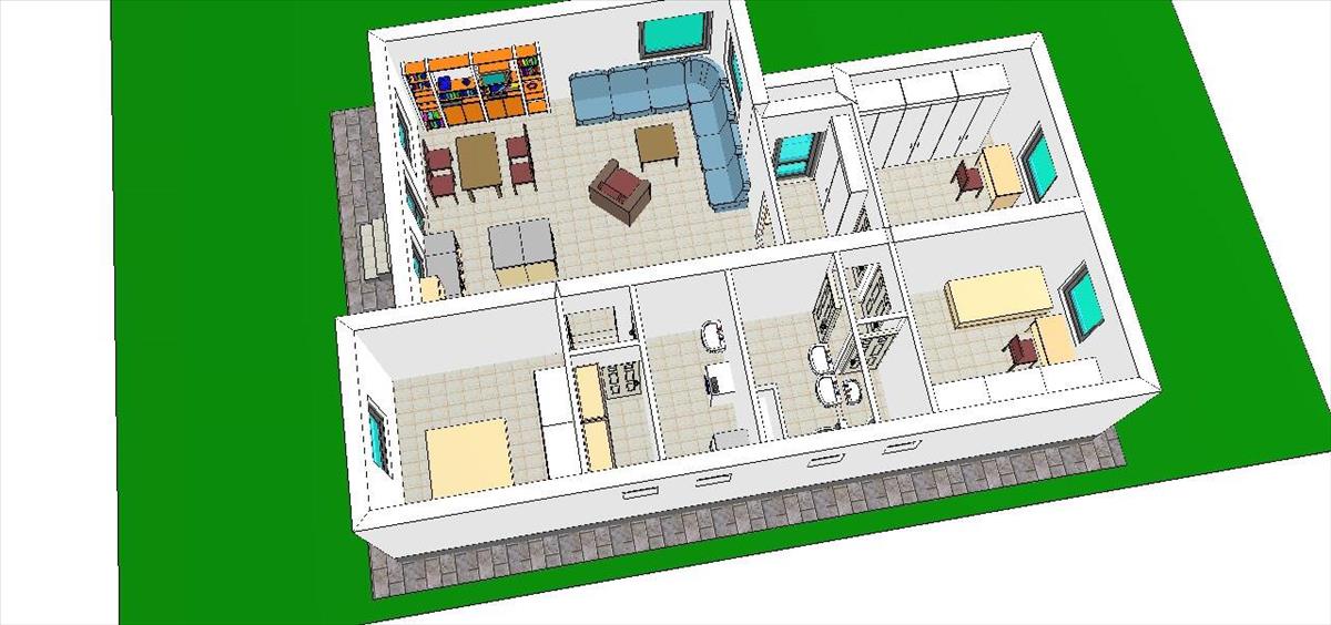 Méret: 97 m² (3 szoba + amerikai konyhás nappali).