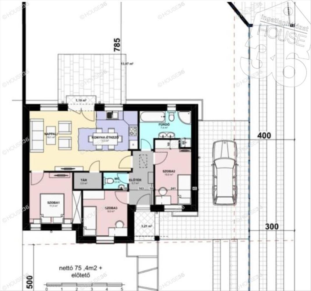 Kiváló elhelyezkedésű környéken kínáljuk ezt a 75 m2-es, nappali + 3 szobás magas minőségű családi házat 400 m2-es telken.