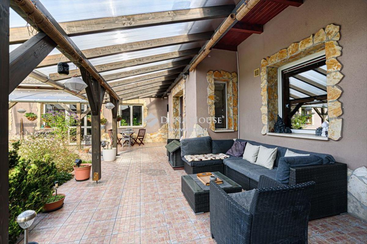 Különleges lehetőség! Egy telken, egymás mellett, két gyönyörűen felújított családi ház áll, mindkettő egyszintes ( így a lépcsőzés elkerülhető ). Hatalmas teraszok, parkosított kert, kellemes családias nyugodt környék. a szépen kifejlődött Herceghalom új építésű családi házas övezetében eladó ez a kétgenerációs ház. a nagyobbik ház 122 nm2, plusz 80 nm2-es fedett terasz. a kisebbik ház 63 nm2, plusz 20 nm-es fedett terasz. a nagyobb méretű házban található egy nagyméretű amerikai konyhás nappali, 3 különnyíló szoba, több gardrób, kazánház, fürdőszoba, külön wc. a kisebbik házban nagy nappali, külön konyha étkezővel, hálószoba, fürdőszoba, külön Wc, tároló. Ez az ingatlan nem csak lakásként kiváló, de alkalmas lehet irodának, vagy ahogy jelenleg is működik, rendelőnek. Mindkét házban hűtő-fűtő klíma van felszerelve. Gyönyörűen ápolt, parkosított, gyümölcsfákkal beültetett kertje 1143 nm2. Egy autó részére fedett parkoló áll rendelkezésre a kertben. De több autó is parkolhat a térkövezett belső udvaron. Herceghalom Kelenföldről 15 perc alatt vonattal elérhető, az ingatlan a helyi vonatállomástól 10 perc sétatávolságra van. Autóval a közlekedés Budapesttől autópályán 15 perc.