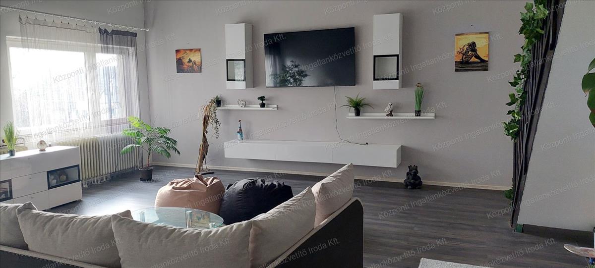 Az ingatlan 145 m2 alapterületű, teljesen alápincézett, 3 szintes, tégla építésű, galériás, tetőtere beépített. a külön bejáratú 52 m2-es teraszos lakrész a középső szinten lett leválasztva, külön bejáratról és a másik lakásból is megközelíthető. Külön víz és villanyórával, vegyes tüzelésű kazánnal rendelkezik. Helyet kapott benne 1 szoba, folyosó, konyha, fürdőszoba WC-vel, és egy tároló. a ház másik felében a középső szint 93 m2-es, itt egy galériás nappali, konyha, spejz, étkező, közlekedő, fürdőszoba, wc, és egy nagy terasz kapott helyet. Az 50 m2 hasznos területű tetőtérben folyosó, 4 szoba és fürdőszoba WC-vel lett kialakítva. Az otthon melegéről vegyes tüzelésű kazán gondoskodik, radiátoros hőleadással, illetve a hangulat a nappaliban található elektromos látványkandallóval is fokozható. a háztartási meleg vizet villanybojler biztosítja. Az egyik fürdőszobában sarokkád a másikban zuhanyfülke ad lehetőséget a lazulásra, felfrissülésre. a nappali laminált padlóval, a szobák szőnyegpadlóval, a többi helyiség járólappal burkolt. a felújítása során cserére kerültek a külső és belső nyílászárók, beleértve a bejárati ajtót is. Az ablakok hőszigetelt, műanyagok. a ház 8 cm-es szigetelést kapott. Külön bejáratú garázs az alagsorban található. Az udvar füvesített, hatalmas fenyőkkel körbevett.