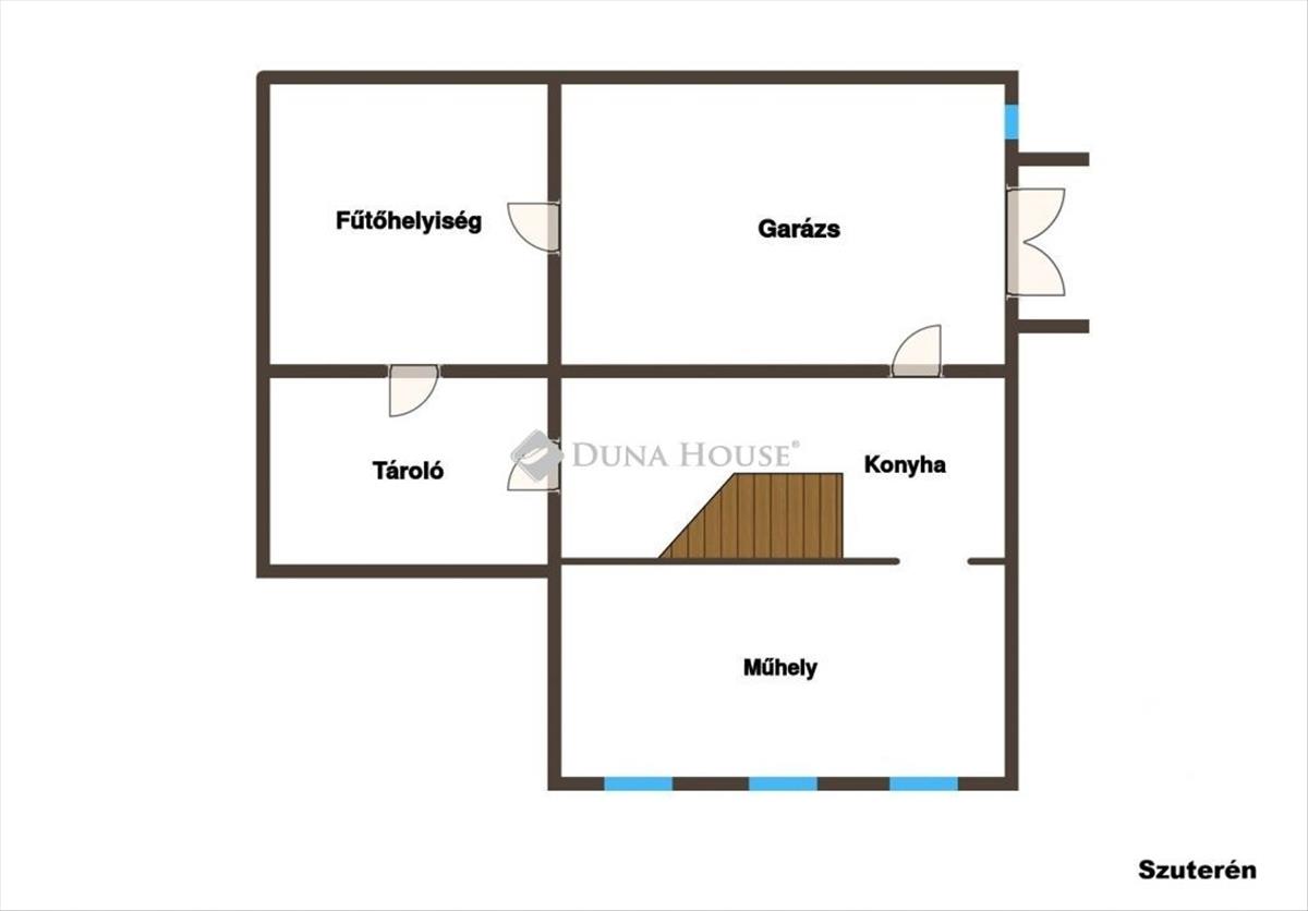 a szuterén szinten műhely, garázs és tároló