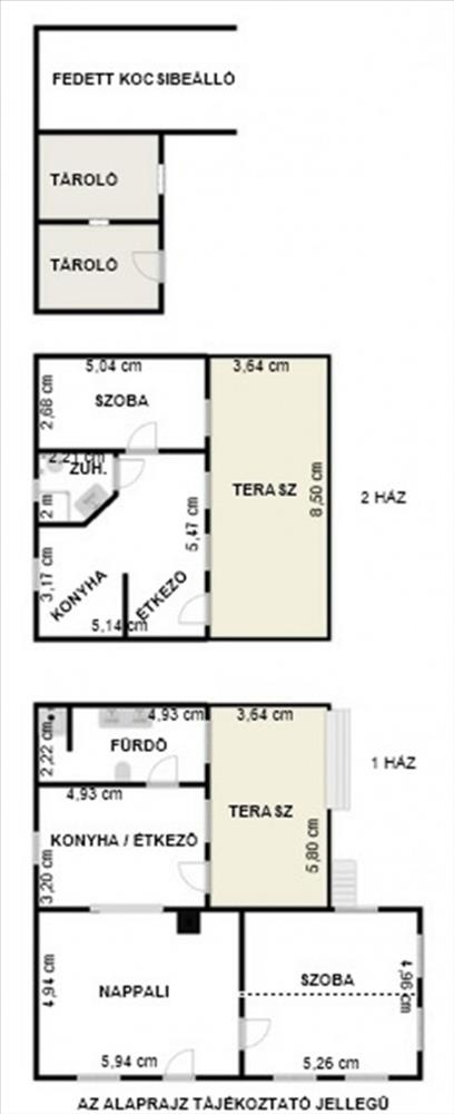 A telken található második, különálló ház 41 m² alapterületű, melyhez egy 30 m²-es saját teraszrész tartozik. Ez az épület szintén beton alapra, Ytong falazattal épült, műanyag nyílászárókkal ellátott. Tetőfedése zsindely, valamint teljes ereszcsatorna-rendszerrel rendelkezik. a közművek közül a víz és villany már bevezetésre került, fűtése kandallóval vagy akár hűtő-fűtő klímával is könnyedén megoldható, így vendégháznak, külön lakrésznek vagy akár kiadásra is tökéletes választás lehet.
