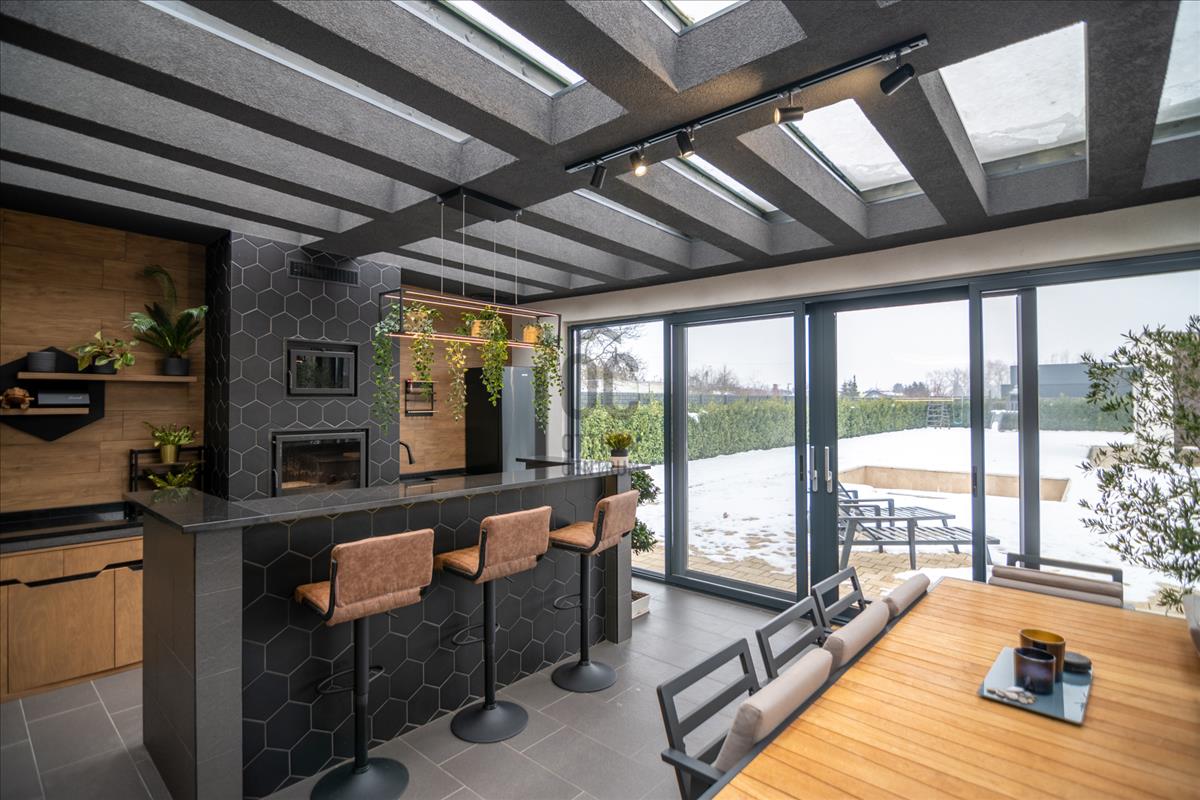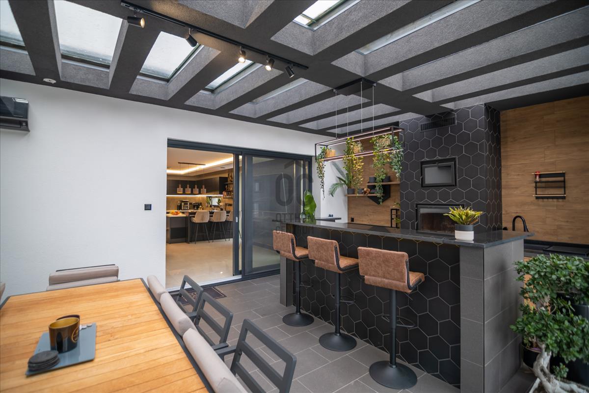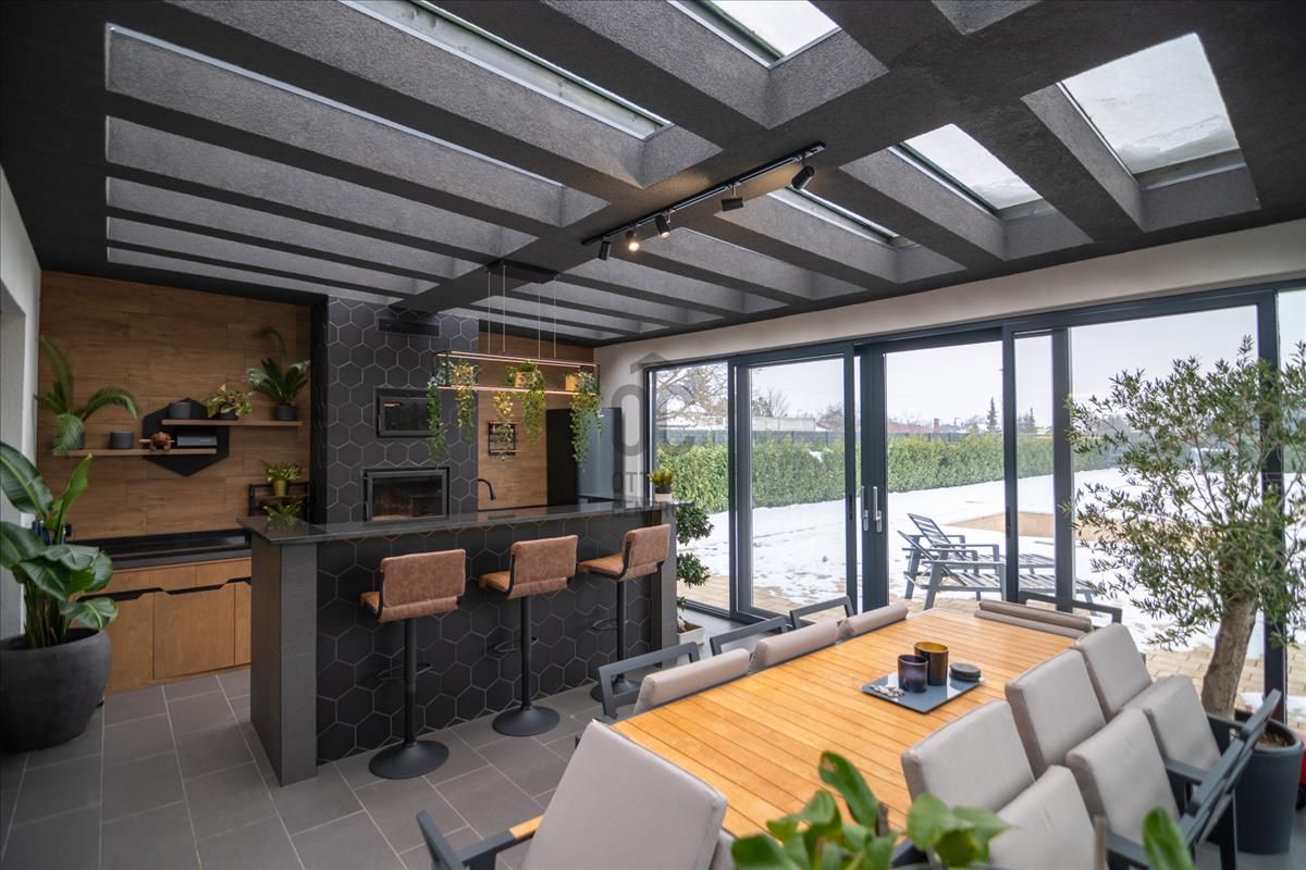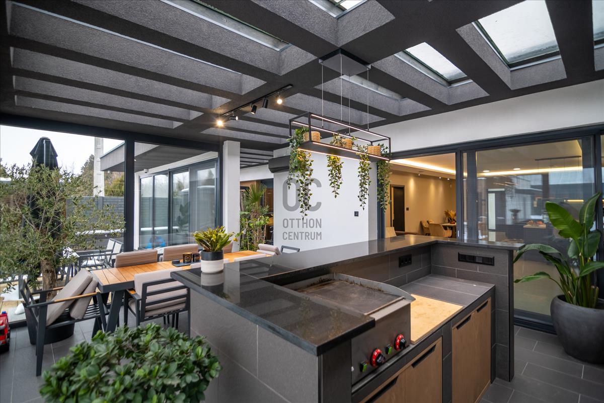 72 m²-es földszinti, fedett, zárt télikert – egész évben használható, reprezentatív élettér