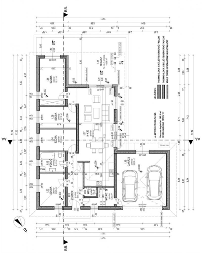 A ház bruttó alapterülete 181, 957 m², nettó 148, 10 m², átgondolt belső elrendezéssel. a tervek szerint négy külön nyíló szoba és egy tágas, amerikai konyhás nappali kerül kialakításra, amely közvetlen kapcsolatban áll a nagy méretű terasszal, így ideális helyszíne lehet családi és baráti összejöveteleknek.