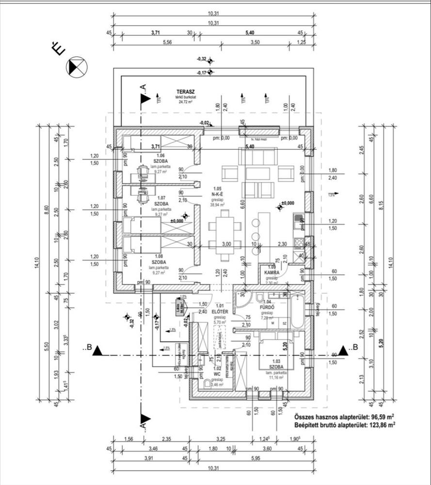 -Konyha+Étkező+Nappali : 38, 94 m2