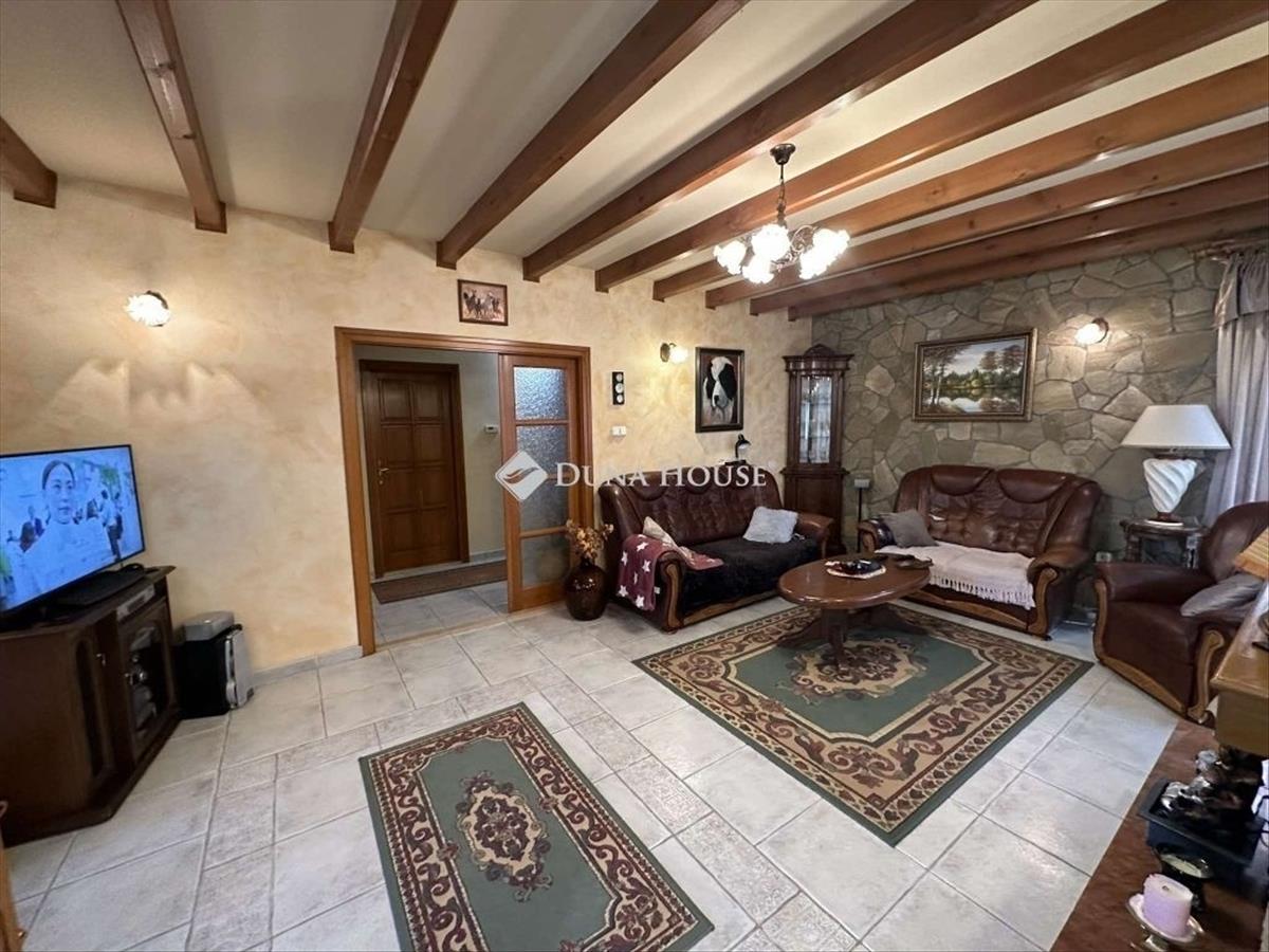 Hernádon eladó egy igényes 155, 85 nm-es hasznos alapterülettel rendelkező családi ház garázzsal, wellness helyiséggel, műhellyel, kis halastóval. Az otthon egy 2779 nm-es körbekerített két autóbejárattal rendelkező telekre épült 2001-ben 42-es Porotherm téglából. Az épület betonfödémes Bramac betoncserép fedésű. a fűtést Sauner Duval gázkazán biztosítja padlón és radiátorokon keresztül, alternatív fűtésre kettő db hűtő-fűtő-klíma és egy kandalló gondoskodik. a meleg víz ellátásról szintén a gázkazán gondoskodik. Az épület belső elosztása előszoba, vendég wc + kézmosó, dolgozószoba, nappali-konyha-étkező terasz kapcsolatos mindkét helyiség, kamra, pincelejáró, garázs, háztartási helyiség- kazánház, két külön nyíló szoba, fürdő-wc, közlekedő beépített gardróbszekrényekkel, wellness helyiség ami szintén terasz kapcsolatú. a külső és belső nyílászárok borovi fenyőből készültek. a konyhabútor tömör diófából készült ami a vételár részét képezi. a családi ház körbekerített körülbelül 1200 nm-es területen fekszik melyre elektromos nagykapun keresztül juthatunk be illetve egy kiskapu. a garázson is elektromos kapu található. Az otthon riasztórendszerrel és kamerákkal felszerelt. Az udvar parkosított öntözéséről fúrt biztosítja. a 2779 nm-es telekből körülbelül 1500 nm-er tartozik a 200 nm-es műhelyrészhez, ezen területre külön elektromos nagykapun keresztül juthatunk be akár kamionnal is. a műhelyben műanyag flakonokat gyártottak korábban. a 200 nm-es épületben 4 helyiség lett elkülönítve ami igény szerint alakítható. Az épület 3, 5 m belmagasságú, melyben 3x32 a, vezetékesvíz és csatorna található. a fűtés elektromos hőlégbefúvós technológiával megoldott, külön mérőórával rendelkezik. a műhelyhez tartozik egy 15 m X 17 m -es tűzi víztároló tó, melyben halak is vannak. Így akár még horgászhatnak is az itt lakók. a tó tövében található egy 2mx9m-es fából készült kutyaház. a környék csendes, 5 percnyi sétatávra vasútállomás, bevásárlási lehetőségek, óvoda, iskola. Ha szeretné megtekinteni ezt a csodálatos Otthont, kérem hívjon bizalommal a hét bármely napján akár hétvégén is. FIX 3% lakáshitelre megvehető