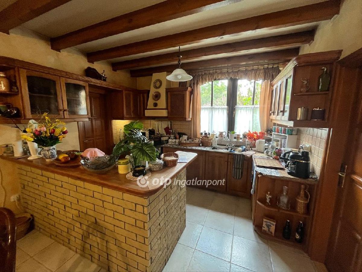 A borovi fenyő nyílászárók és a tömör diófa konyhabútor tovább emelik az ingatlan értékét.