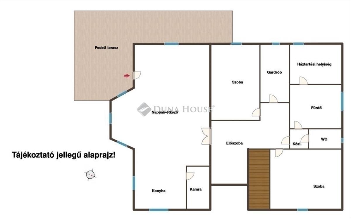 A 99 m² hasznos alapterületű otthon praktikus elrendezéssel rendelkezik: egy hálószoba, amerikai konyhás nappali, gardrób, fürdőszoba, külön wc, háztartási helyiség és kamra kapott benne helyet mindez kényelmes és átgondolt térszervezéssel.