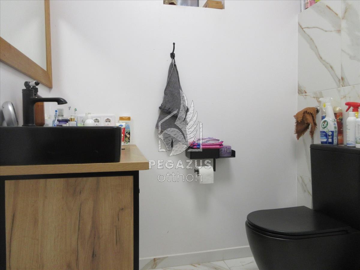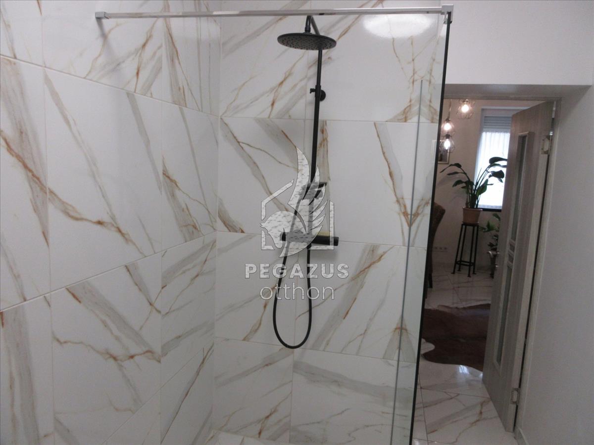 Modern fürdő: Gyönyörű, frissen burkolt, zuhanyzós fürdőszoba várja az új lakókat, melyet kifejezetten könnyű tisztán tartani.